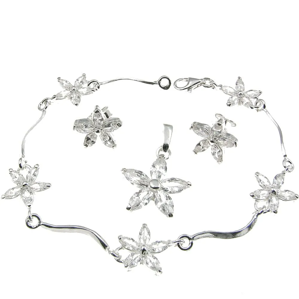 Śliczny srebrny komplet kwiatuszki z cyrkoniami