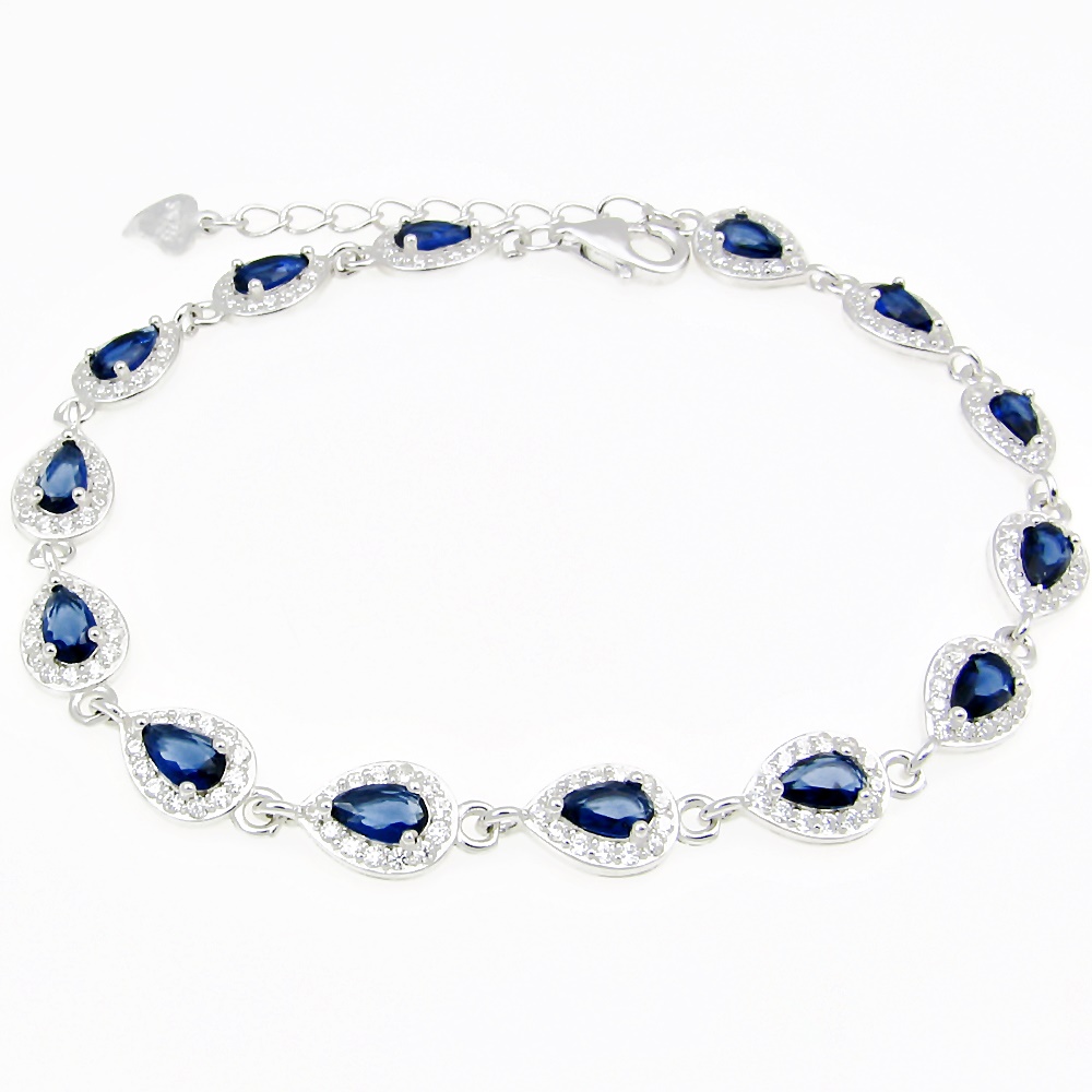 Piękna srebrna bransoletka rodowana z szafirkami