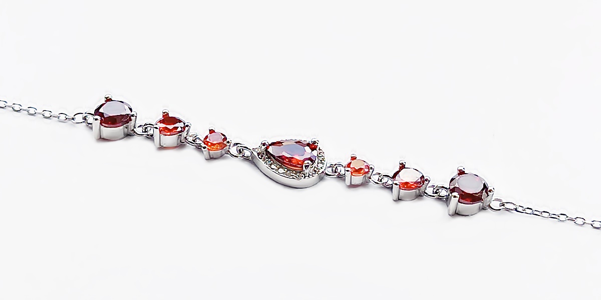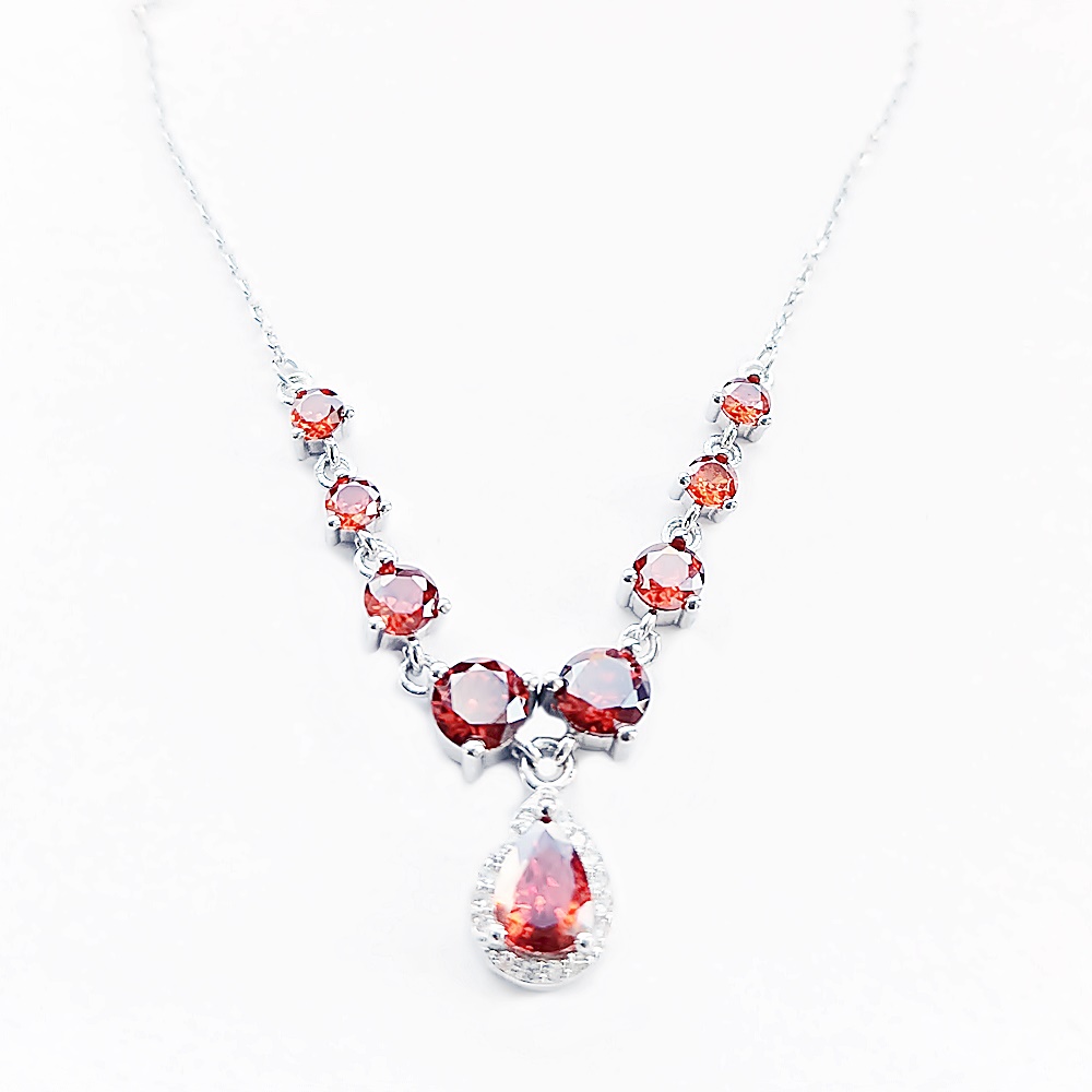 Elegancki i subtelny wzór biżuterii, z eleganckimi rubinowymi cyrkoniami, doskonały również na szczególne okazje.