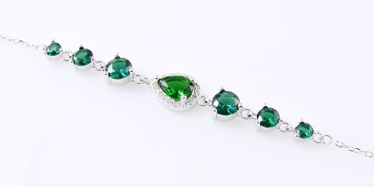 Gustowna i elegancka srebrna bransoletka z zielonymi cyrkoniami i białymi kryształkami, idealna na wszelkie okazje i na co dzień, doskonała do wszelkich kreacji. Wykonana w całości ze srebra, rodowana. Długość bransoletki 16 cm + łańcuszek do regulacji 4 cm, szerokość środkowego ogniwka 8 mm, waga 3,6 g. Subtelna i elegancka, wyjątkowa bransoletka doskonała na niepowtarzalny prezent dla modnej i eleganckiej kobiety.