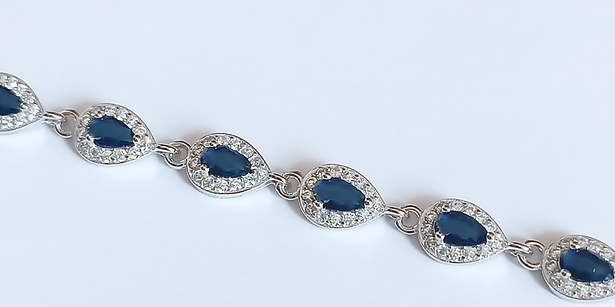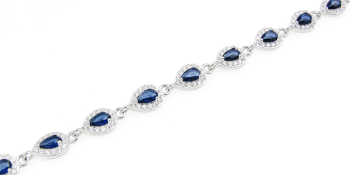 Odkryj modę w najlepszym wydaniu dzięki naszej pięknej, rodowanej bransoletce wykonanej ze srebra próby 925, ozdobionej wyjątkowymi, głęboko niebieskimi szafirkami oraz subtelnymi kryształkami. Ta wytworna biżuteria łączy w sobie klasyczną elegancję z delikatnym blaskiem kamieni szlachetnych, które doskonale podkreślą Twój styl podczas specjalnych okazji.