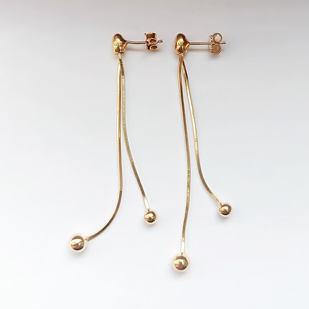 Pozłacane długie kolczyki srebrne wkrętki z 2 linek z kuleczkami.Wykonane w całości ze srebra próby 925 przez polskiego producenta, srebro pozłacane Waga: 3,3 g, długość 7 cm. Modny wzór nowoczesnych kolczyków, doskonale prezentuje się na uchu. Wisiorek do kompletu dostępny w naszym sklepie w kategorii wisiorki srebrne.