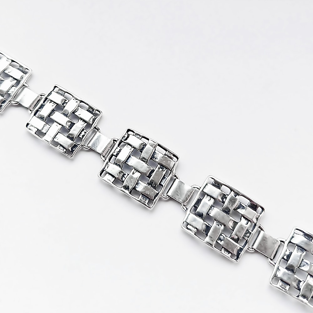 Oryginalna oksydowana bransoletka srebrna wykonana w całości ze srebra próby 925 przez polskiego producenta. Waga 15,7 g, długość 18,5 cm, szerokość 1,6 cm. Oryginalny i ciekawy wzór idealny na każdą okazję, świetny na prezent dla kobiety.