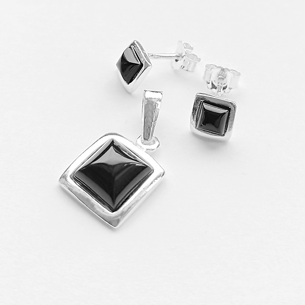 Gustowny wisiorek srebrny z czrnym onyksem, kwadracik. Wykonany w całości ze srebra próby 925 przez polskiego producenta. Waga 2,3 g, wymiary wisiorek 1,2 cm x 1,2 cm + uchwyt. Zawsze modny prosty wzór biżuterii z nocą KAiru idealny pomysł na niepowtarzalny prezent.