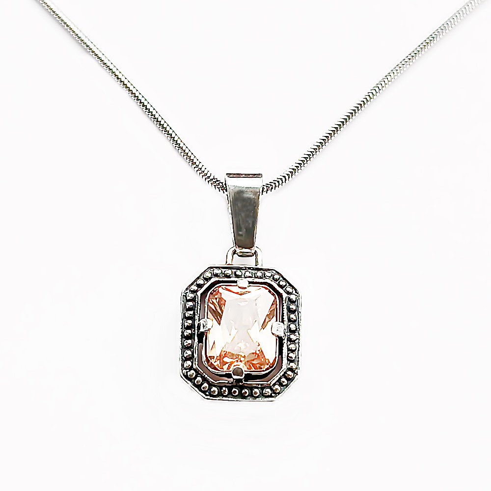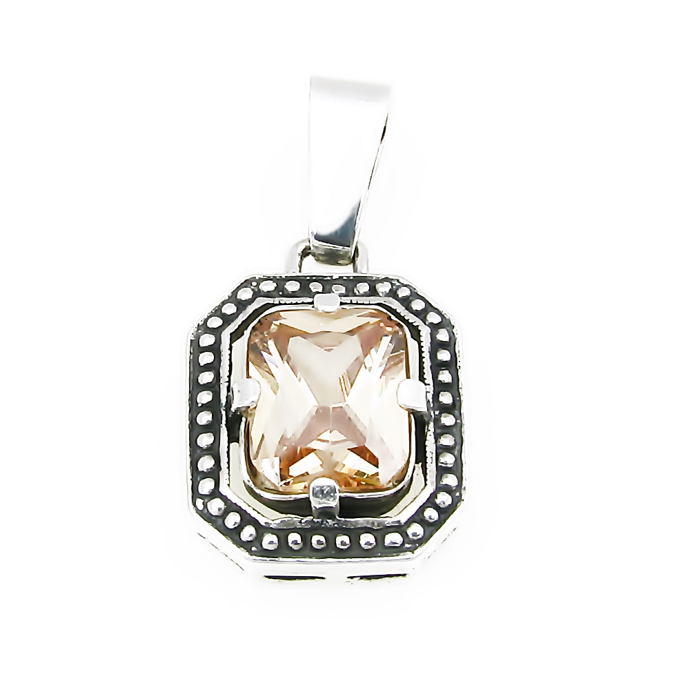 Wisiorek srebrny z cyrkonią w herbacianym kolorze, doskonały do wszelkich łańcuszków, w eleganckim prostokątnym kształcie.